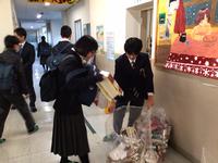 登校時にSEP委員会が資源回収を呼びかけています。SEPとは「Save The Earth and People」の略で、南中の伝統の1つです。