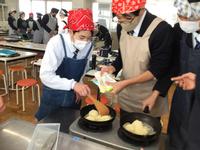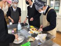 3年生が家庭科の授業で調理実習を行いました。野菜や果物を入れた幼児向けのおやつ作りに取り組みました。