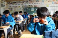 生徒たちは、教室で豚汁をおいしくいただきました。