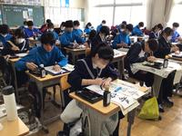 書き初め大会では、書き初め用紙に向かって、真剣に筆を走らせる姿が見られました。(文責 稲垣)