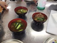 小松菜を3センチ幅に切ったり、かつおぶしと昆布で出汁をとったりしていました。