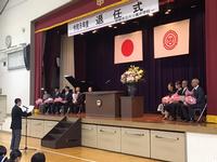 本日は退任式を行いました。昨年度まで勤務され、本年度をもって転退任された先生方が2・3年生向けに言葉を送ってくださいました。