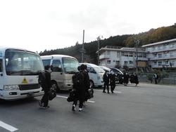 〈通学バスに乗り込む生徒たち〉