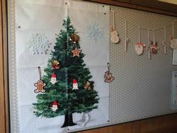 12月も4日が過ぎました。保健室前の掲示はいつの間にかクリスマス