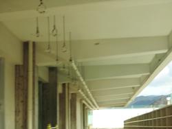 金属製の管が伸びてきており、その部分は通行禁止となっています。