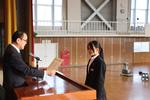 今日の月曜集会では、岡崎市書初め展入選者の表彰を行いました。その後、岡崎警察署交通課