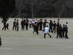 短い時間ですが、昼放課を使って運動場でドッジボールをして遊び、身体を