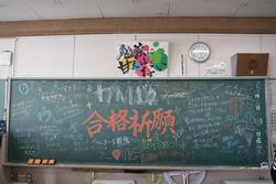 今朝3年生の教室の黒板には、私立推薦入試を受ける級友に向けての応援メッセージが書かれていました。明日に迫った入試に向けて、学年全体で応援する雰囲気が感じられます。入試を受ける3年生は、自分を信じて頑張ってきてほしいと思います。