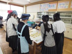 F組でパン作りを行いました。始めは、生地をこねる動作に戸惑っていましたが、2,3回くり返すうちにコツをつかみ、楽しく作っていました。パンが発酵する様子に、「小さな生地がこんなに膨らむんだ!」と新たな発見もあったようです。友だちと協力して作ったパンは、きっとおいしさも倍増!になったのではないでしょうか。