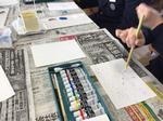 1年生の美術の授業では、生徒たちがモダンテクニックに挑戦する姿が見られました。。絵の描写にはいろいろな技法があることを知り、偶然できる模様や色彩の面白さを味わいながら、作品作りへのイメージをもつことができていました。
