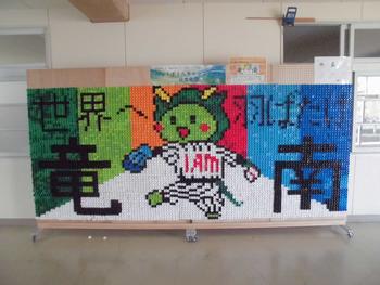 文化祭前にお披露目されたペットボトルキャップアートの全景です。