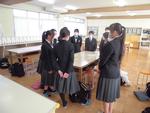 授業後、布絵本つくりボランティアの生徒たちが集まり、アイディアを出し合っていました。
