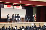 県駅伝大会で優勝し、全国大会に出場する女子駅伝部の皆さんに全校でエールを送りました。