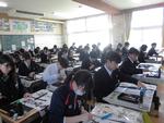 3・4時間目に校内書写大会を行いました。国語の授業で練習してきた文字を真剣に書きました。