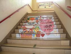 校舎内に3カ所ある階段アートが新しくなりました。冬休みの間に芸術部の皆さんが貼り替えてくれました。