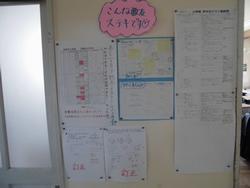 明日から1・2年生の学年末テストが始まります。1年廊下には学習に関する掲示がありました。