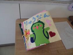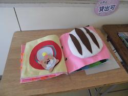 2学期から生徒会役員やボランティアで作ってきた布絵本が完成しました。今は図書室前に展示されています。