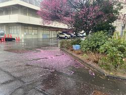 久しぶりに本格的に降ったので、梅の花が散って絨毯のようになっていました。