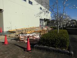 体育館の東側でエアコンの室外機を設置するための基礎工事が進んでいます。