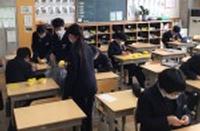 1年生は、卒業生や入学生が胸につけるお花を作っています。