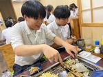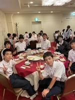 修学旅行1日目の夕食は、クラス別の会場です。