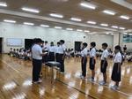 全校集会の前に、後期生徒会役員の任命式が行われました。