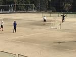 先日の西三大会で3位に入賞し、明日に県大会を控えている男子ソフトテニス部が、運動場で練習に励んでいます。