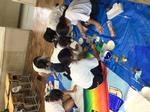 明日が最終日となる旗制作。各クラスの個性が光る旗が出来上がってきています。
