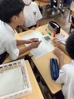 1年生がモザイクアートの作成を行いました。指定されたマス目に色を丁寧に塗る作業を、級友と楽しく行う様子を見ることができました。文化祭に向けて、多くの生徒が準備に関わっています。ぜひ、ご家庭でも学校の様子をお聞きいただき、支援していただきたいと思います。