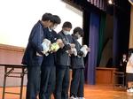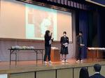 いのちの始まりについて学び、「先生にインタビュー」のコーナーでは、保健委員の先生が質問をし、子育て中の学年の先生に妊娠中や出産の時のお話をしていただきました。「生まれたばかりの赤ちゃん人形」の抱っこ体験では、代表の生徒が大事そうに抱っこをし、「思ったより重い」「かわいい」など命の大切さや愛おしさを感じることができたようです。「生と性」について真剣に学ぶことができました。この学びを将来の自分と家族、パートナーを大切にすることにつなげてほしいと願っています。
