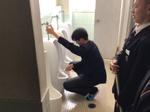 トイレ掃除に熱心に向かう姿です。10分間の清掃時間。